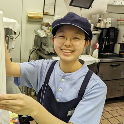 モスで働き始めた時は覚えることが多く大変でしたが、アルバイトの先輩が優しく丁寧に教えてくれたので毎日頑張ることができました。これから自分がどれだけ成長できるか楽しみです。